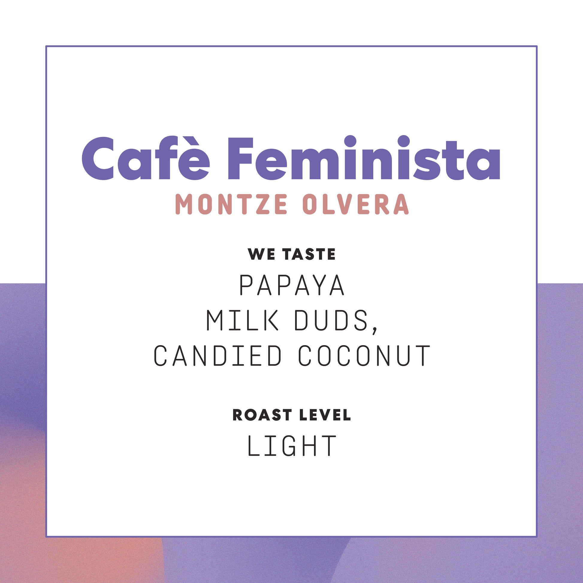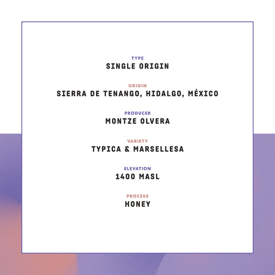 Café Feminista: México Montze Olvera celebrates women producers creating opportunity, ownership, and real economic impact through coffee. This honey-processed lot comes from Montze Olvera and Las Adelitas, a feminist ecological collective in Hidalgo, México, honoring Indigenous and campesina women historically erased from coffee’s value chain.